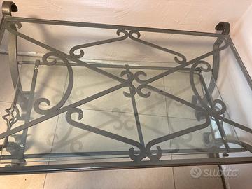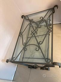 Tavolino in ferro battuto e vetro infrangibile