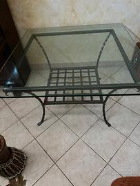 Vendo tavolino in ferro battuto con vetro di cristallo misura larghezza 110 lunghezza 110 altezza 50
