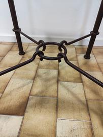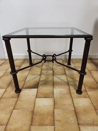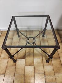 Vendo, come da foto, tavolino in ferro, color testa di moro con particolari color oro, con ripiano in vetro estraibile.