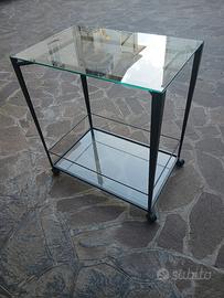 per cambio arredamento,tavolino in ferro con vetri e ruote,pari al nuovo.misure lunghezza 70,laghezza45 altezza80.solo ritiro a mano,no spedizioni