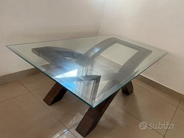 Tavolino in legno color mogano base in vetro