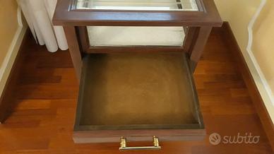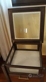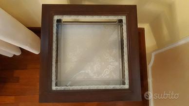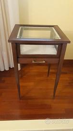 Tavolino in legno con bacheca in vetro