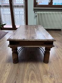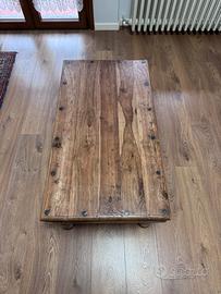 Design semplice e autentico, che valorizza le venature naturali del legno. Sul tavolino sono presenti alcuni elementi in ferro che donano carattere al pezzo.