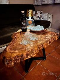 tavolino in legno d'ulivo e resina epossidica