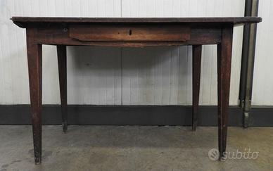 Vecchio tavolo in legno massiccio di noce con cassetto e gambe a spillo