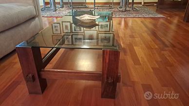 Tavolino in legno e cristallo