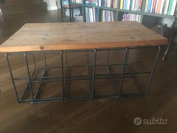 Tavolino con top in legno e base in ferro. Dimensioni 95x53x43 Vendiamo causa trasloco Mobile realizzato da un artigiano Molto robusto
