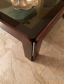 Legno noce massello, con vetro fumè. Dimensioni 90x90 cm, H.35 cm.
