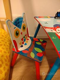 Tavolino in legno per bimbi, usato ma in buone condizioni. È presente qualche piccolo segno di usura sui bordi delle sedie e un piccolo graffietto sul top del tavolo. La struttura del tavolo e delle sedia non presenta alcun tipo di danno. Consegna solo Trento Città.