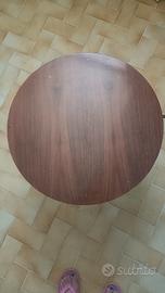 Tavolino tondo in legno, anni '50, con 3 gambe tornite e decorazioni intagliate sul bordo.