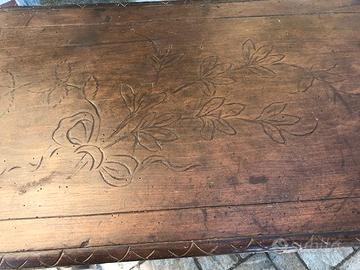 Particolare tavolino in legno scolpito a mano. Misure: larghezza 100, altezza 80 e profondità 40.