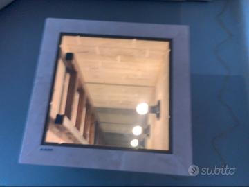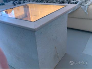 Tavolono effetto infinito ,in vero marmo travertino e vetro temperato,completamente artigianale per stupire gli ospiti con l illusione .