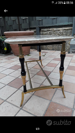 Delizioso e raffinato tavolino vintage anni 60, in elegante struttura in metallo e ripiano composto da una massiccia lastra di marmo grigio variegato, ideale complemento di arredo al servizio di divani o poltrone