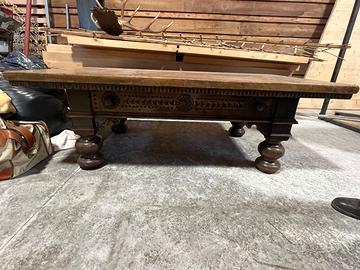 Tavolino in noce nazionale massello lucidato a cera epoca 1930 dim 85x159 x h53