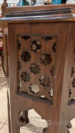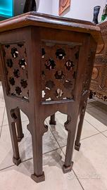 Elegante tavolino ottagonale in legno di noce, finemente lavorato secondo l'autentica tradizione dell'artigianato arabo. Un pezzo unico che unisce funzionalità e raffinatezza artistica, ideale per arredamenti in stile orientale o per creare un punto focale distintivo in qualsiasi ambiente