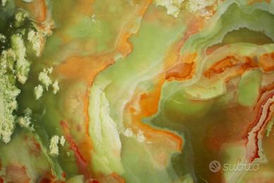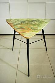 Vendo un tavolino da caffè risalente agli anni ’50. Un pezzo unico. Il ripiano è in onice con sfumature che variano dal verde al rosso. La struttura di sostegno è in ferro. Le dimensioni sono 60×60 cm, altezza totale di 40 cm. Il tavolino si presenta in ottimo stato di conservazione, vendo causa trasferimento. Prezzo trattabile