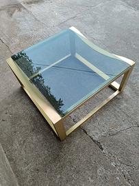 Tavolino in ottone Massiccio con piano in vetro fumé, design Luciano Frigerio Misure 80x80x40 cm