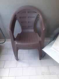 Tavolino in plastica di colore verde con 4 Pz Poltrona Sedia Resina di plastica marrone impilabile con braccioli per casa Giardino Bar sagra Campeggio.semi nuove €.50 solo ritiro