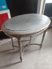 tavolino in stile barocco, in legno e marmo Carrara, da restaurare la doratura