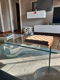 Vendo tavolino in vetro curvato di design, composto da due elementi: