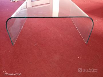 tavolino in vetro trasparente curvato di dim. 90 x 90 x h. 36. come nuovo