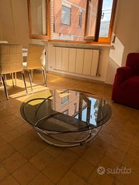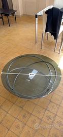 Tavolino rotondo basso in vetro ed alluminio adatto ad ambienti moderni e luminosi, solido e ben tenuto.
