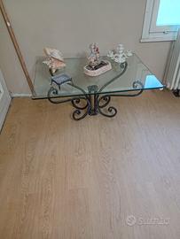Tavolino in vetro e ferro battuto
