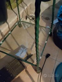 tavolino in vetro e ferro battuto colore verde con ripiano in ottimo stato. il ritiro è a carico dell'acquirente