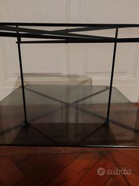Tavolino / carrello da salotto con struttura in metallo nero e doppio ripiano in vetro fumé.