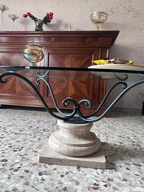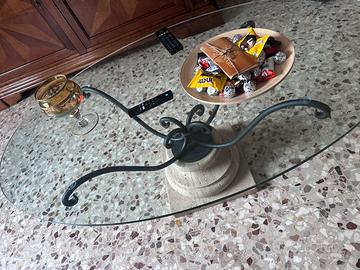 Tavolino in vetro spesso e di buona qualita, con base materiale solido (pietra+ferro battuto) in stile classico e sobrio.. possibilita di visionare il tavolino di persona.