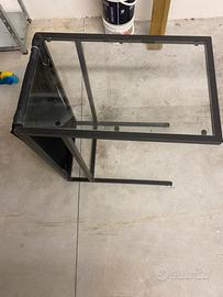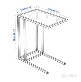 Vendo tavolino in alluminio e vetro. Da utilizzare come porta pc o come porta telecomandi. In abbinamento anche la sacca per riporre in ordine tutti i telecomandi.