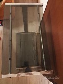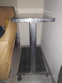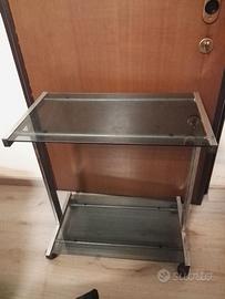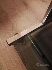 Tavolino porta TV in vetro temperato con ruote . misure nelle foto. C'è una crepina che si vede nella foto sul vetro del ripiano di sotto, ma il vetro è facile da togliere per sostituire o lasciare il ripiano di sotto senza il vetro.
