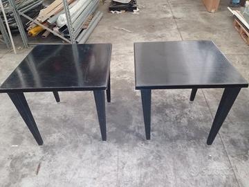 Tavolo quadrato con i piedi in acciaio ricoperti in vimini, struttura in acciaio piano in legno, colore nero e 4 tavolini 80x80 alluminio.