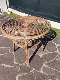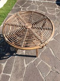 tavolino in vimini, ottime condizioni, deve solo essere verniciato. misure altezza 57 cm e diametro 66 cm.