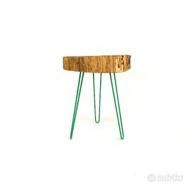 Parole chiave: Tavolino, Comodino, Tronco, Legno Massello, Hairpin Legs, Design, Industriale, Rustico, Artigianale, Verde.