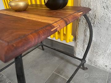 Tavolino in stile industriale/rustico in ferro battuto e piano in legno. Misura piano 38x38cn altezza 40cm. Molto pesante (oltre 5kg). Il tavolino e il piano sono stati recentemete restaurati in modo professionale. Ritiro Genova Via Napoli ( sopra stazione ferroviaria di principe) . Posso dornite ulteriori fotofrafie o dettagli.