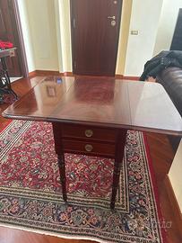 Vendo bellissimo tavolino inglese con alette apribili in piuma di mogano Profondità 68 cm Larghezza massima apertura 90 cm Altezza 73 cm Non esitate a contattarmi watsapp al 3398399133