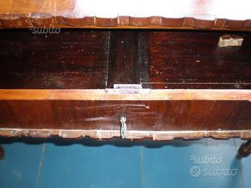 Particolare tavolino con ripiano intarsiato con legni vari. Epoca fine settecento/ inizio ottocento. Da lieve restauro. Misure 105x58x75. Prezzo: 1150 euro trattabili. No perditempo.