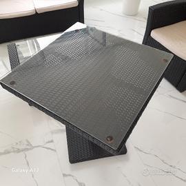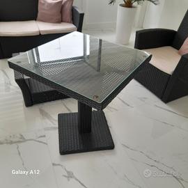 tavolino 70x70 in effetto rattan intrecciato non stampato con piano in vetro