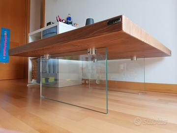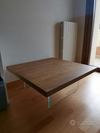 Vendo tavolino basso LAGO dimensioni 92x92 cm altezza 36 cm in legno con due gambe in vetro chiaro.