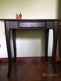 Tavolino tipo scrittoio ikea color marrone scuro con cassettino. Ideale per appoggiare pc o come piccola scrivania misure 80x50cm. Io lo avevo abbinato a sedia pieghevole