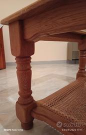 Elegante tavolino di legno con vetro nella parte superiore e paglia di Vienna nel ripiano inferiore. ottime condizioni.