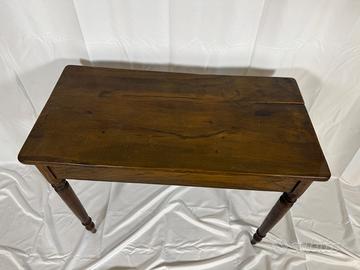 Tavolino legno scuro gambe tornite Larghezza 78 Altezza 97 Profondità 49 OGGETTI STIMATI DA PROFESSIONISTA DEL SETTORE DI ACCADEMIA DI BELLE ARTI DELL'AQUILA.