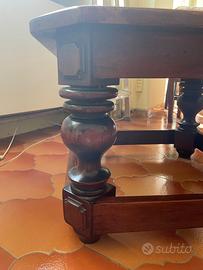 Elegante tavolino vintage con gambe tornite e piano squadrato. - Struttura robusta in legno massello. - Design classico e intramontabile. - Dettagli intagliati sulle gambe.