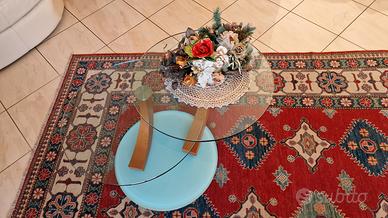Tavolino con struttura in legno lamellare e soprastanti cristalli circolari in vetro stratificato diametro cm. 70 e base tavolo in vetro stratificato diametro cm. 60, con possibilità di rotazione di entrambi gli appoggi, vendo euro 60.
