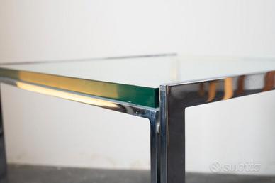 Tavolo di alta qualità in vetro e acciaio.