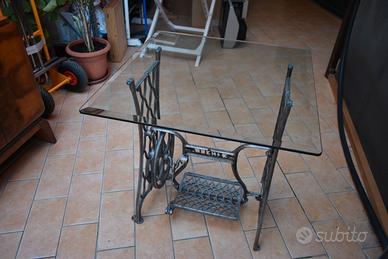 Vendo tavolino realizzato con base macchina da cucire Excella anni '30 di colore argento e piano in cristallo con bordi taglio diamante 70 X 70 Cm. utilizzabile come tavolino sia da interno che da giardino, scrivania, porta televisore o consolle da ingresso. Euro 180 trattabili. Ritiro a mano NO spedizione.