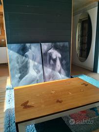 tavolino in legno massiccio con intarsi trattamento ad olio
