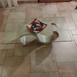Tavolino da salotto con marmo travertino in unico pezzo. Misure 120 x 65 altezza 40 Cristallo naturale.