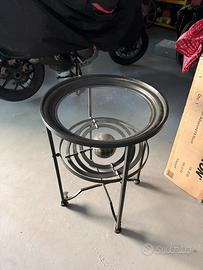 Tavolino in vetro con struttura in ferro nera